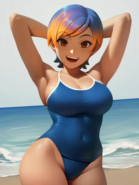 基础提示词:1girl, sabinewren, short hair, multicolored hair, brown eyes