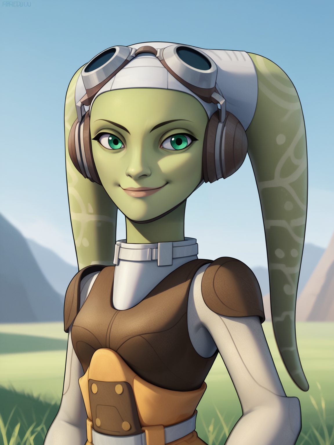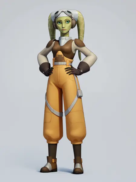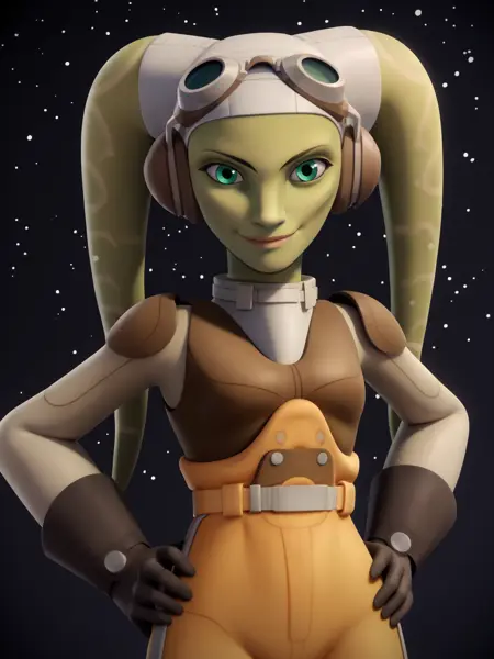 基础提示词:1girl, herasyndulla, 触手状头发, 双马尾, 绿色眼睛, 外星人, 绿色皮肤