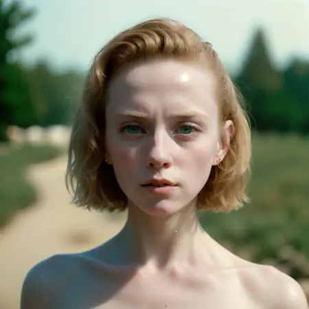你可能需要在负面提示词中加入 blur haze naked。我的数据集不包含任何成人内容,但该模型似乎很容易生成性感相关的内容。请注意,在负面提示词中使用 blur 和 haze 可能会让图像更清晰,但同时也会减弱模拟胶片的质感效果。