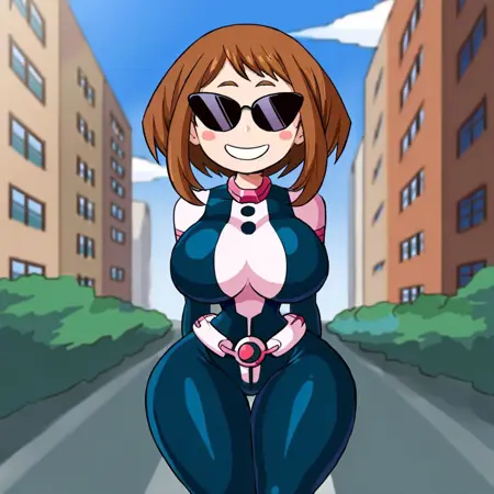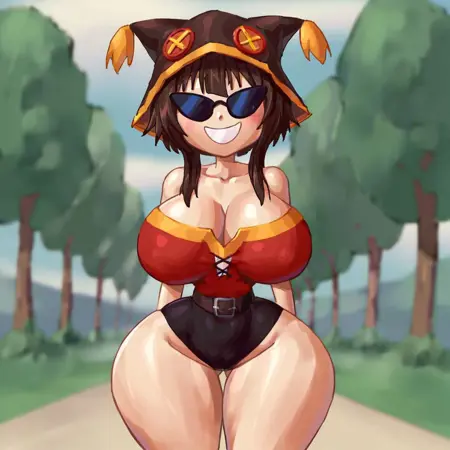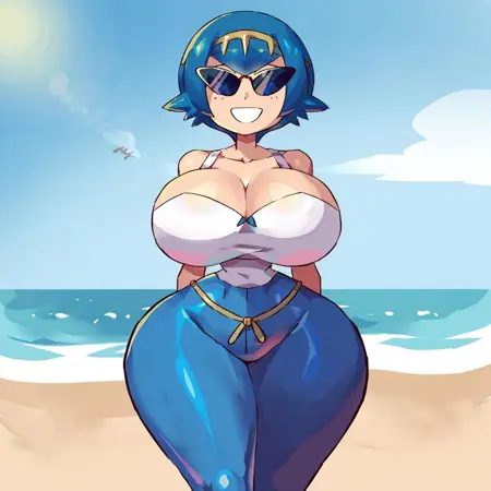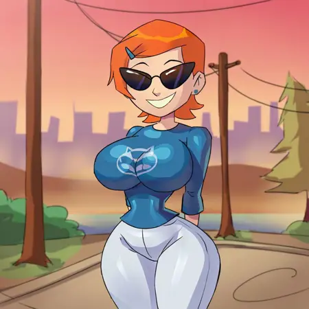 墨镜,巨乳,宽臀,阳光化,圆头,简单面部,微笑,细腰,