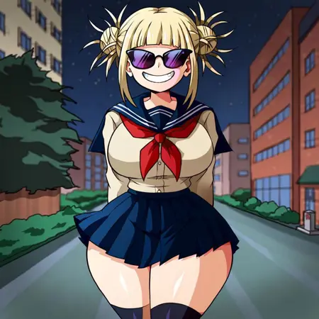 선글라스, 큰 가슴, 넓은 엉덩이, 서니피케이션, 둥근 머리, 단순한 얼굴, 미소, 날씬한 허리,