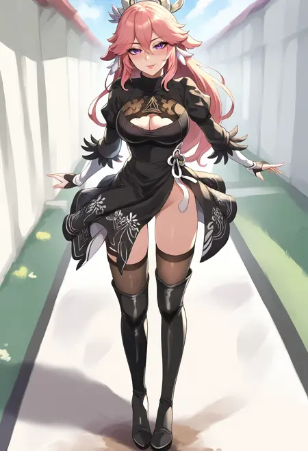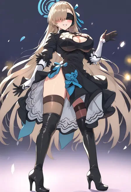 **Sorry, I didn’t initially think that some people might be interested in the option without a skirt. This can be achieved with "2b_outfit, white highleg leotard, black outfit"