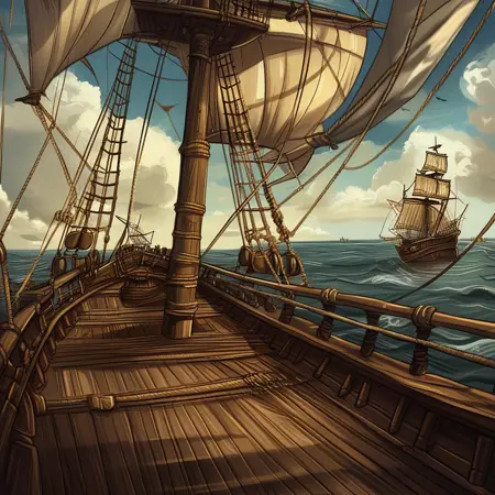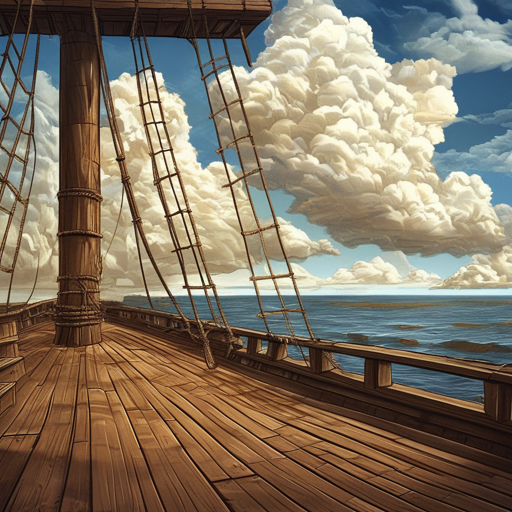 Ship deck (wooden sailing ship, warm anime)
