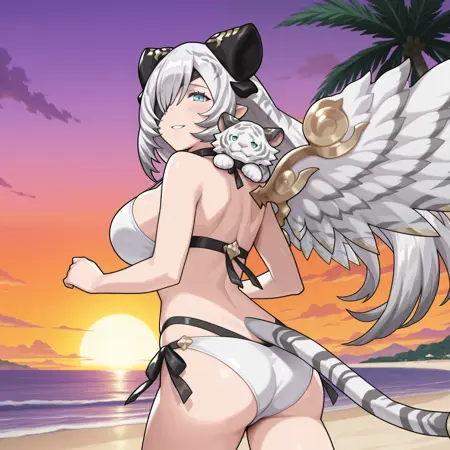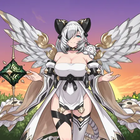 トリガー語: Fudo Myo-o (ドラガリアロスト)、アクアアイズ、青い目、アイパッチ、白髪、長い髪、翼、尾、虎の尾