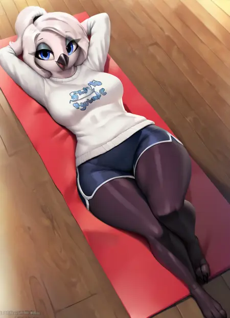 score_9, score_8_up, oily, bird girl, furry, furry female, huge breasts, long hair, white hair, two tone body, beak, avian, table, nipples, breast squish, squish, <lora:TFFeathersV2:1>
