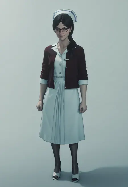 连衣裙, 外套, 护士帽, 眼镜, 护士