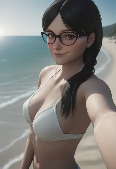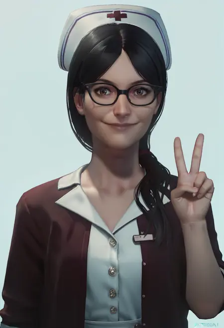 使用 3d 或/和 render 可使她看起来更接近游戏中的形象,或将其放入负面提示以获得手绘风格。