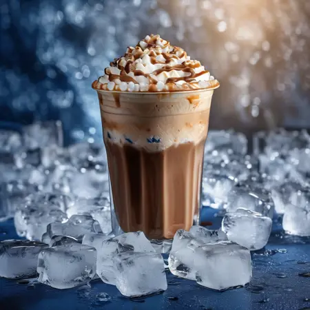 For example: masterpiece, high quality, One latte, dark blue background, ice, lora:ice_xl:0.8 j_ice
