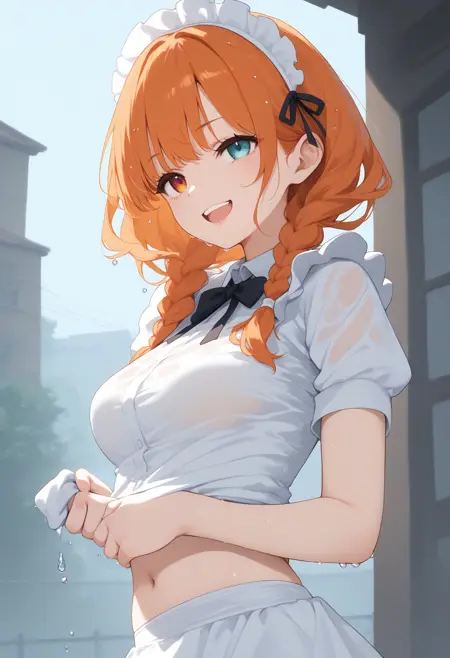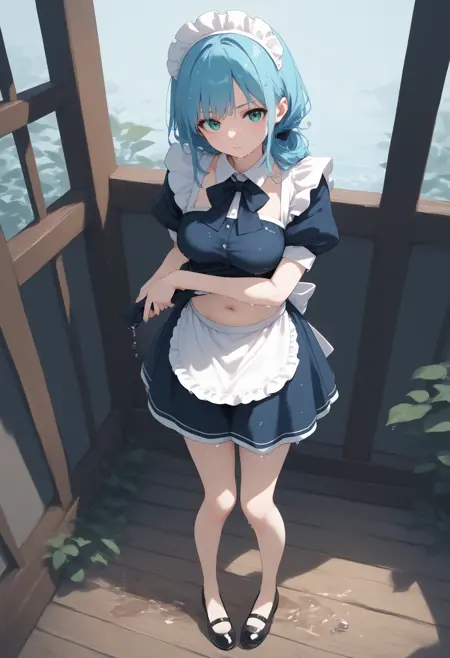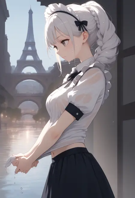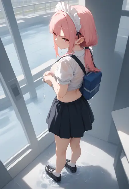 트리거만으로 포즈를 만들 수 있지만, wet clothes, wet hair, wet skirt 등을 추가하면 젖은 분위기와 정서가 더해집니다.