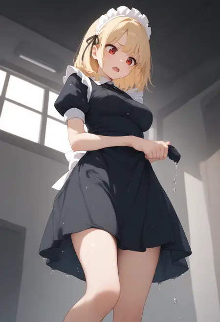 갑작스러운 비나 바다, 강에 들어가 옷이 젖었을 때 밑단을 짜는 LoRA입니다.