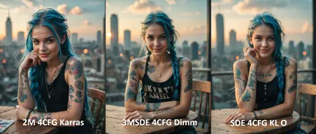 사용하는 샘플링 방법은 DPM++2M SDE Karras입니다. 다른 방법도 시도해보세요. KL Optimal과 Polyexponential으로도 훌륭한 결과를 얻고 있습니다.
