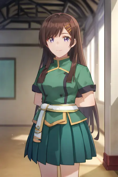 Season 1 Dress (Unstable): hero dress, white waist sash (she only appeared on just one scene in this dress I tried to train it as well but it is unstable).