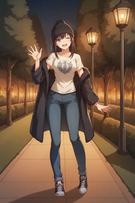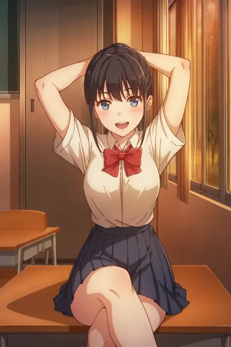 触发词:蓝眼睛、黑发、马尾辫、刘海和侧发