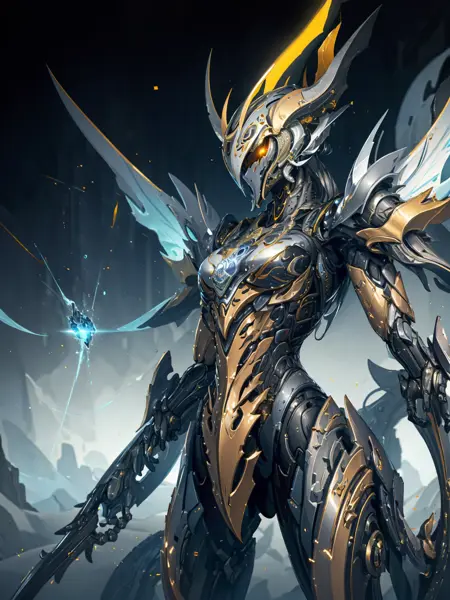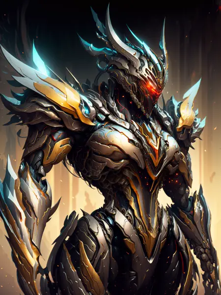 lora:EnhancedBacklighting\_v10:0.2,armor, fake_horns, glowing, full_armor,warframe,humanoid_robot,horns,helmet,mask,sample_background,