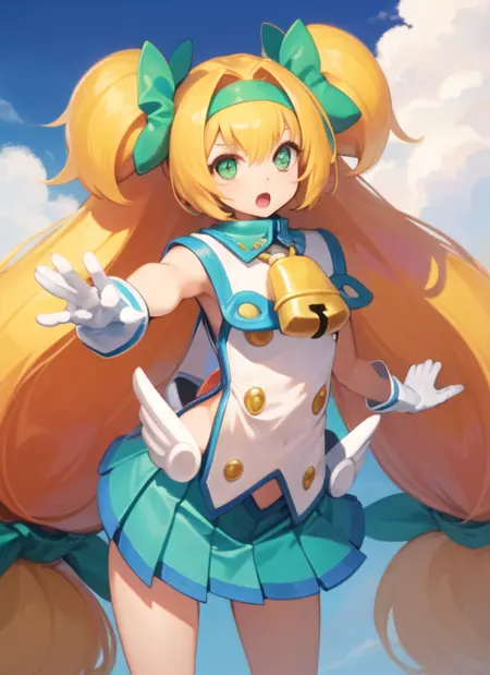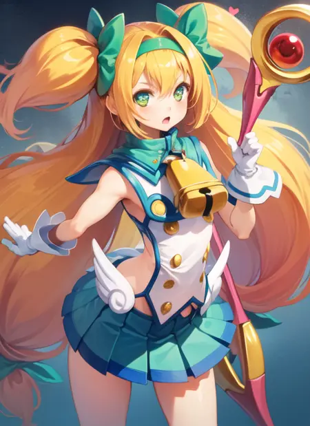 헤어밴드, 장갑, 심장 모양 동공, 종, 리본, 스커트, 스커트, 리본 끈, 지팡이