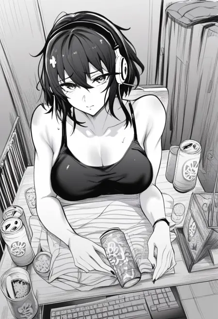 同人誌アーティストドラムスの作品を基にしたLoRAスタイル。これは主に、マンガや同人誌でよく見られるモノクロ/グレースケールの画像をドラムスのスタイルとともに生成することを目的としていますが、適切なプロンプトで通常のカラー画像を生成することも可能です。モノクロスタイルを確実に生成するには、モノクロ、グレースケール、無色などの用語がネガティブプロンプトフィールドに含まれていないことを確認してください。そうでないと、カラー画像を生成しようとします。(例はショーケースプロンプト情報を参照してください)。