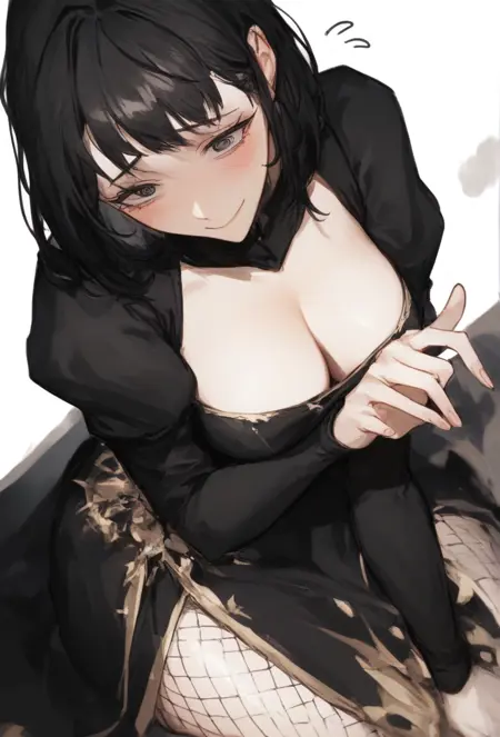 short hair, black hair, black eyes