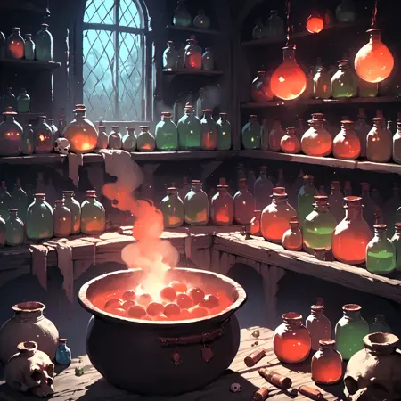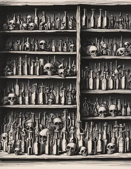 this one is also pretty simple to use, bottles, bones, skulls, it'll make an "organized" mess of them, monochrome and charcoal are optional it can do color just as well, add table and room to set a broader scene or just so whatever you want, it should have some style within the trigger so maybe you can just use it for that :D