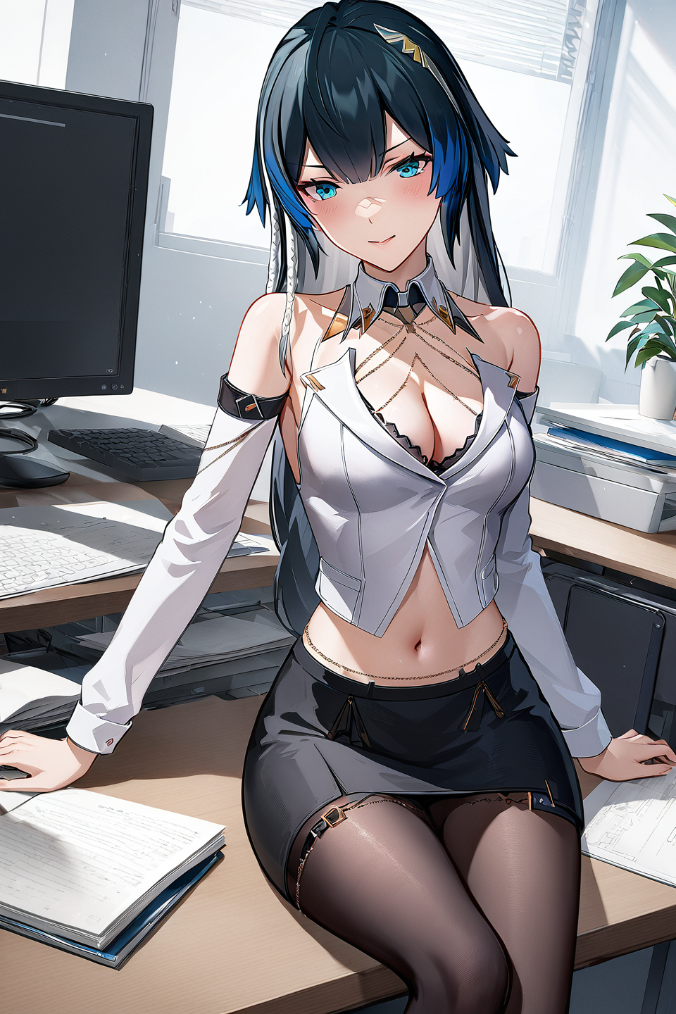 작업복 + katya work: fishnet thighhighs 또는 black thighhighs 선택 가능