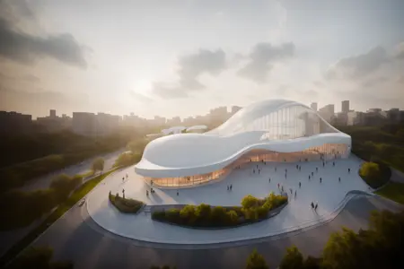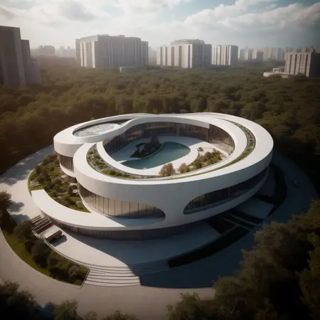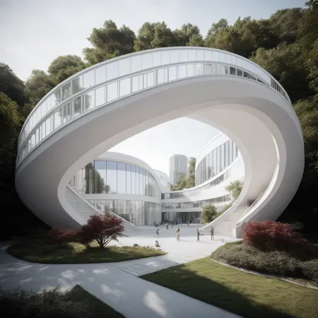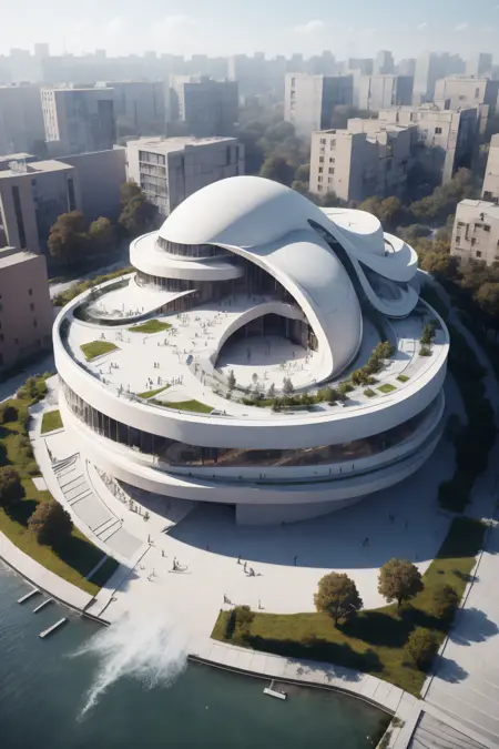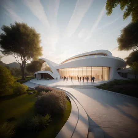 テストプロンプト:Best quality, masterpiece, curvedarchi, realistic, architecture, outdoors, photo realistic, hyperrealistic, super detailed, intricate, dramatic, shadows, high dynamic range, human perspective
