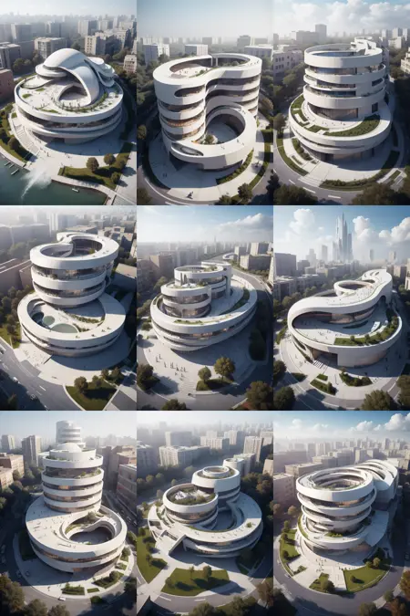 テスト用プロンプト:Best quality, masterpiece, curvedarchi, realistic, architecture, outdoors, photo realistic, hyperrealistic, super detailed, intricate, dramatic, shadows, high dynamic range, human perspective
