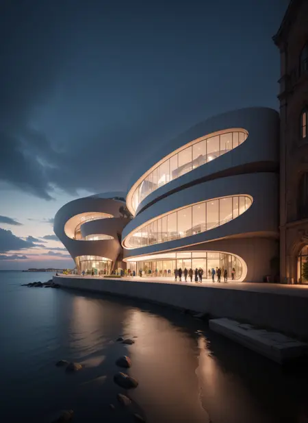 测试提示词:Best quality, masterpiece, curvedarchi, realistic, architecture, outdoors, photo realistic, hyperrealistic, super detailed, intricate, dramatic, shadows, high dynamic range, human perspective