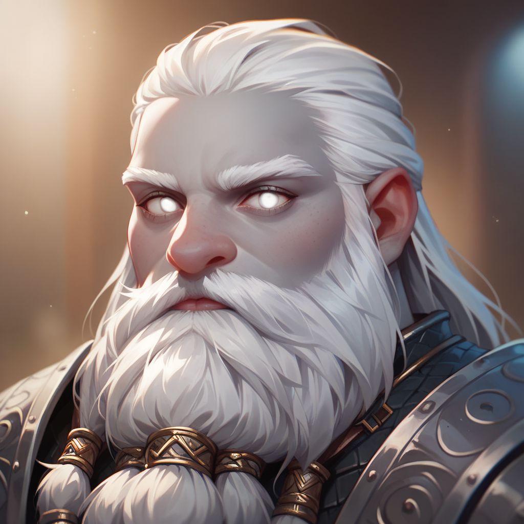예시 프롬프트: 드워프, 키가 작음, 큰 코, 두어가르, 회색 피부, 흰 머리카락, 흰 눈, 1girl, 갑옷,
