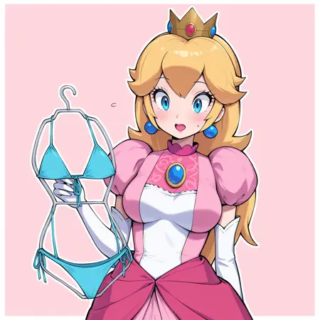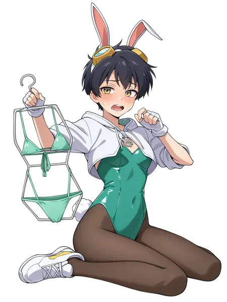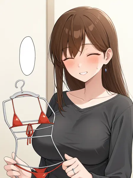 옷걸이에 비키니가 걸려 있고, 다양한 자세로 반응하는 소녀들의 다소 인기 있는 트렌드 아트 모델입니다.