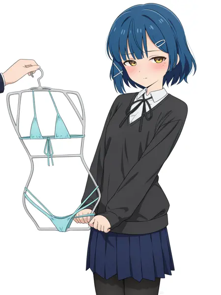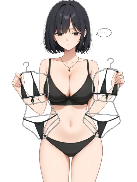 Model of kinda popular trend art of girls reacting to a hanger with a bikini in different poses.