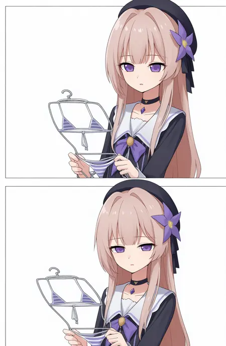 hangerbyother: 화면 밖의 캐릭터가 들고 있는 옷걸이