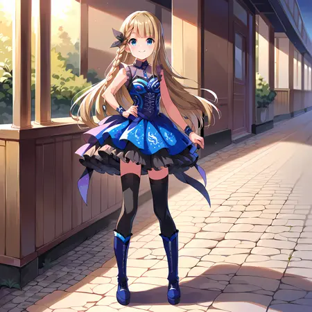 narumiyasuzu2, suzuidoly dress, suzuidoly wrist cuffs, black thighhighs, suzuidoly knee boots,