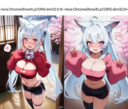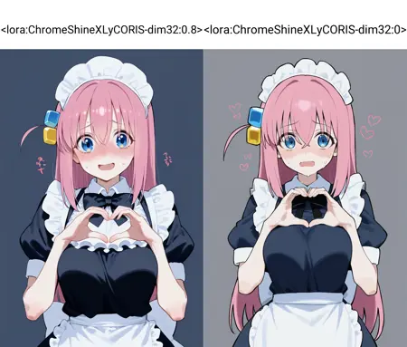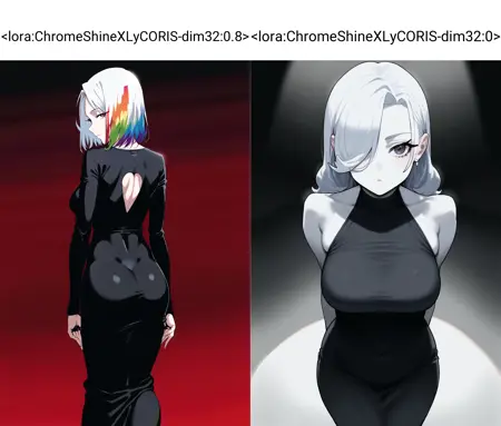이것은 ChromeShineXL의 LyCORIS 스타일 추출입니다. 다른 생성 서비스에 업로드하지 마세요. 사용하고 싶다면 저에게 연락해 주세요. 제가 직접 업로드하겠습니다. 이는 사람들이 이를 다른 곳에 업로드할 때 종종 매우 열악한 예시 이미지와 함께 올려서 저를 괴롭히기 때문입니다.