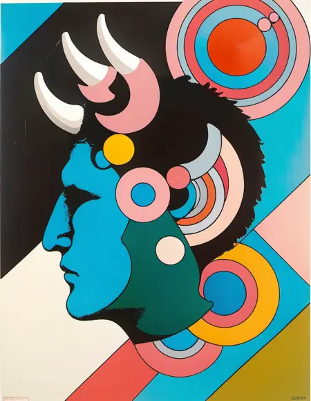 Milton Glaser 스타일로, 파란 재킷을 입은 남성을 그래픽 디자인한 것