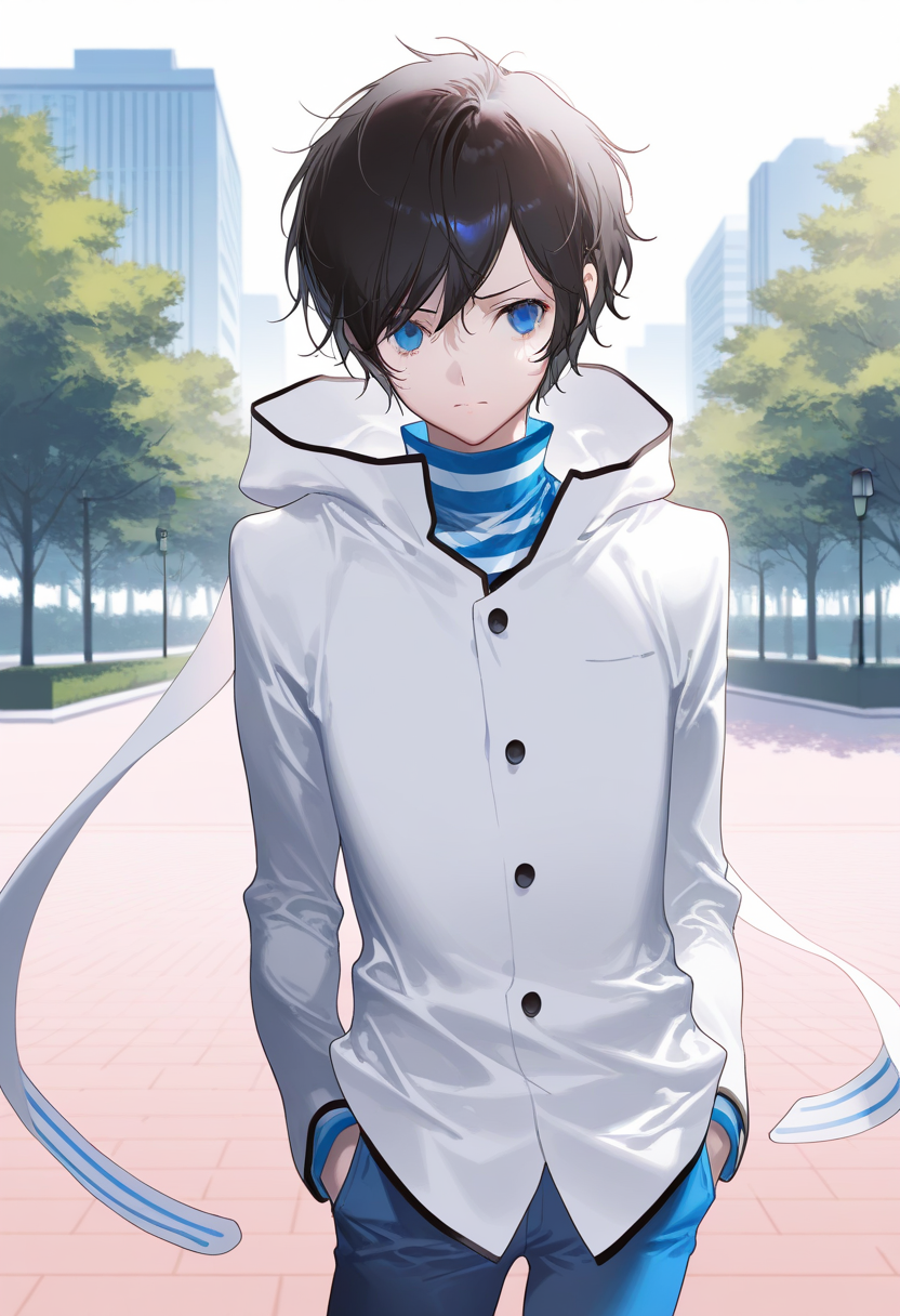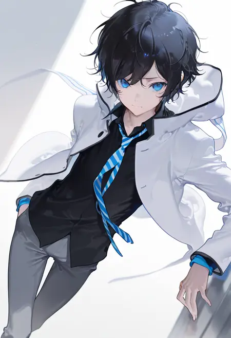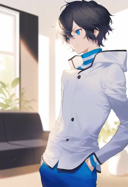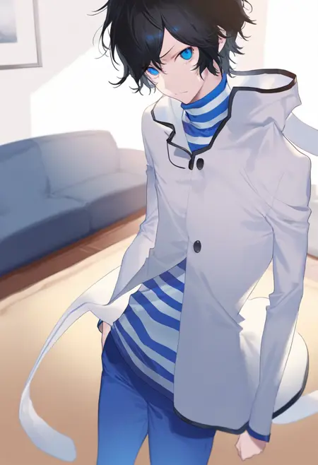 生成时,以以下标签开始:ds2 protagonist, black hair, short hair, blue eyes