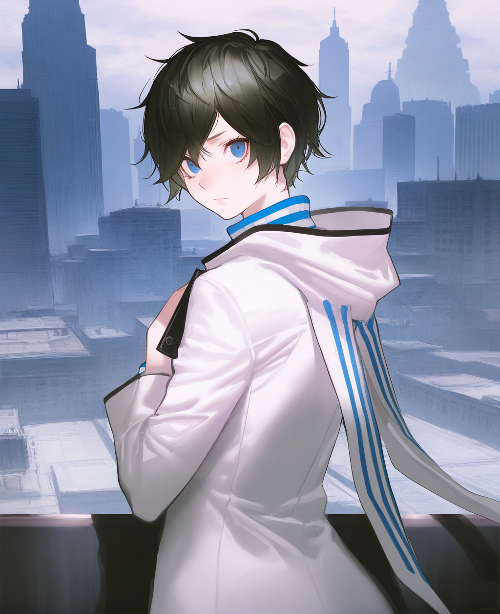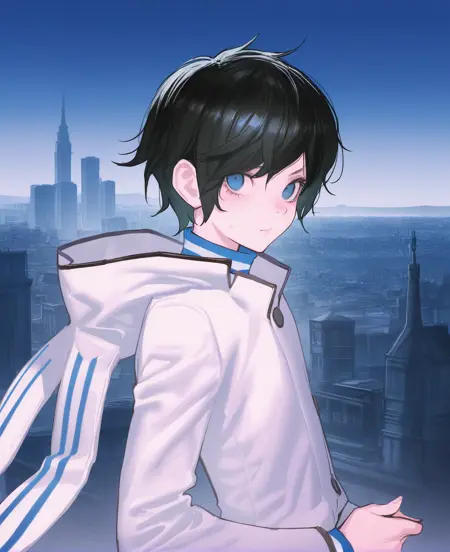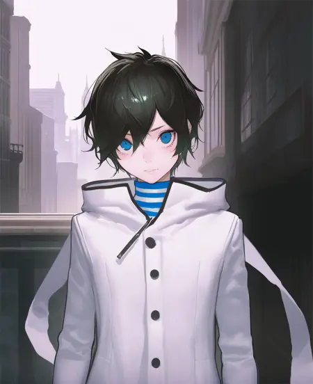 to Generate, start with those tags: ds2 protagonist, black hair, short hair, blue eyes