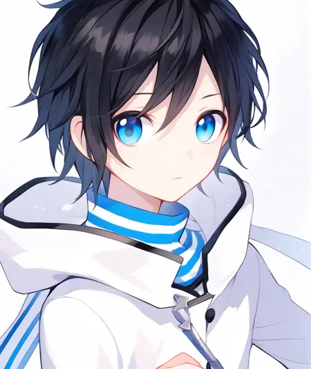 生成时,以以下标签开始:ds2 protagonist, black hair, short hair, blue eyes