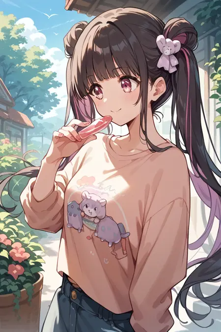 「Michiru」と「1girl」を使用。衣装のバリエーションを求める場合は、サンプル画像のプロンプトを参考に。ヘアスタイルはツインテール、ロングヘア、前髪がおすすめ。すべての要素がよく機能する。エッチなスタイルにも対応。
