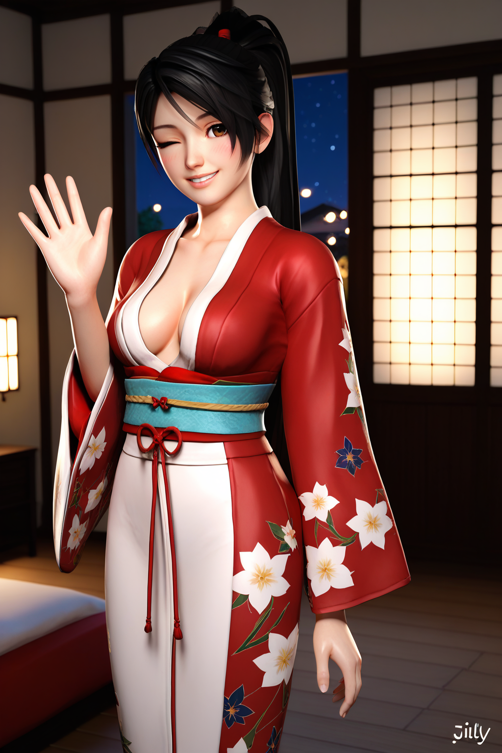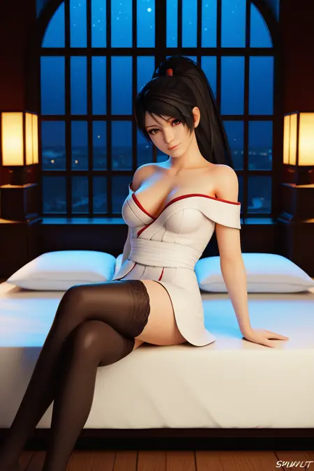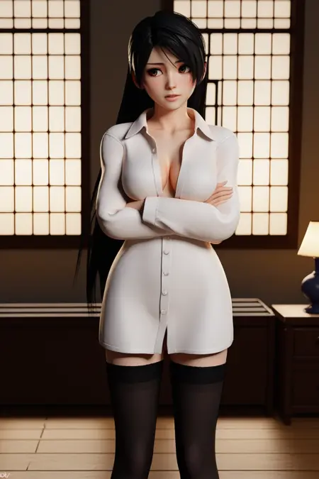 Triggers: 3D, black hair, long hair, bangs, ponytail,