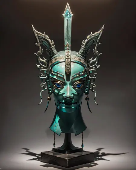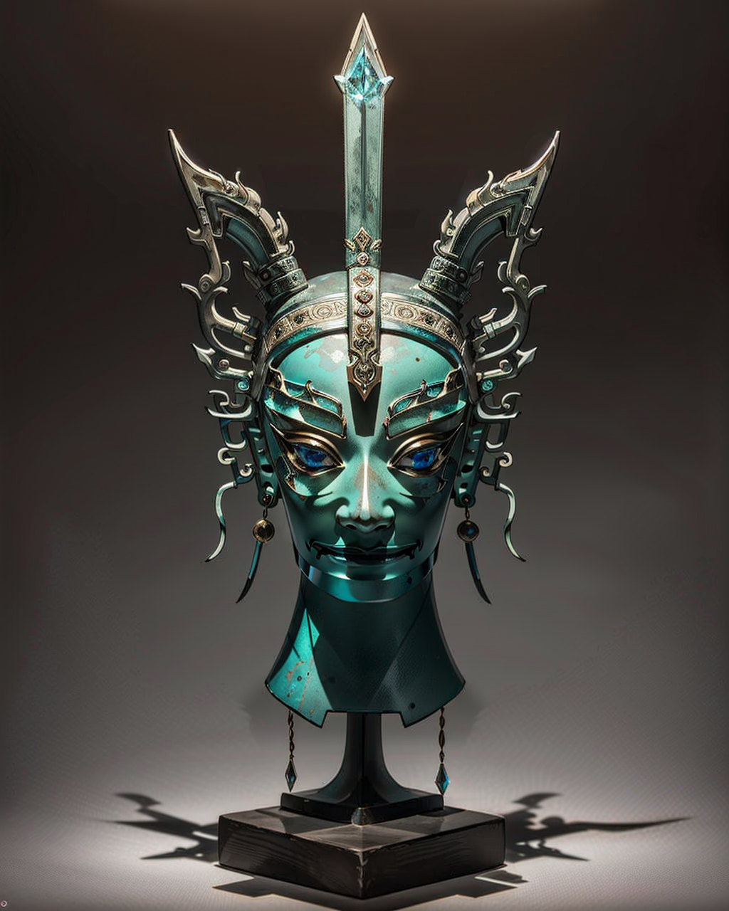 三星堆遺跡のマスク、彫刻、青銅器を用いて訓練されたLoRAであり、元のデータに多くの青銅製マスクが含まれているため、胸像が頻繁に生成されやすい。
