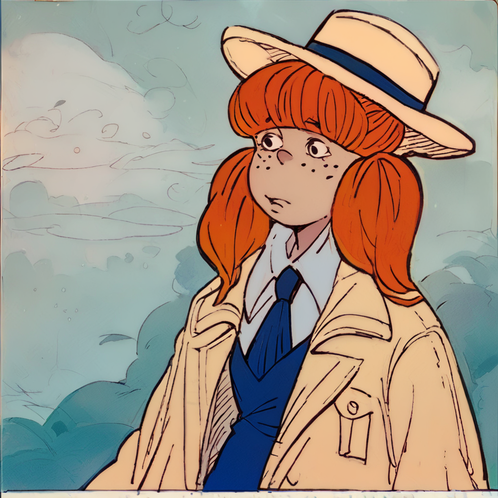 character tags: mezgakriszta, 1girl, freckles, orange hair, round eyes, black pupils, short twintails
