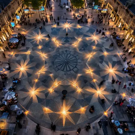 positive: 一个幻境般的都市景观,摩天大楼具有分形纹理,表面不断变幻出银色与靛蓝色的棱镜图案,由具有珍珠光泽的透明步道相连,遍布着时隐时现的全息生物,呈现出电光蓝与粉红的色调;