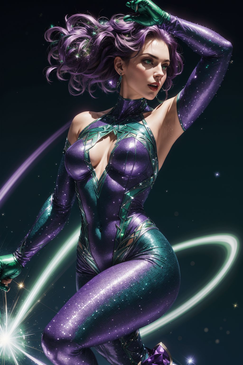 このTIを使用する場合、プロンプトに“sparkly”(きらきらした)や“sparkles”(きらめき)、“glitter”(きらびやか)などの類語を含めると、画像は非常にきらきらとした仕上がりになります。これらの言葉を含めない場合は、画像のどこかに控えめなきらめき効果が現れる傾向があります。