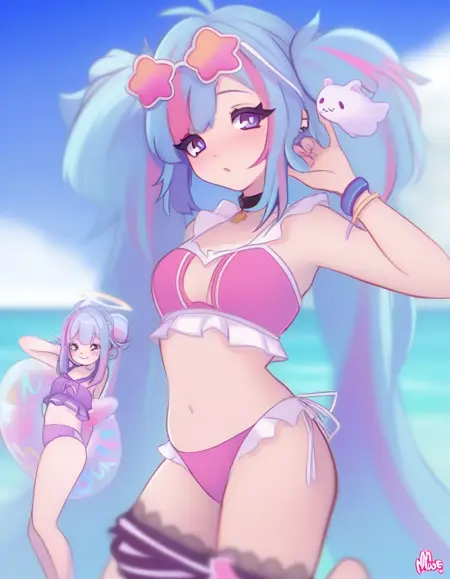 One would think (I did), that adding tokens like colorful and chromatic aberration would make it better, however adding those words would make it to use more colors, having it resemble less the original style, so instead going for a 3 colors scheme works better!