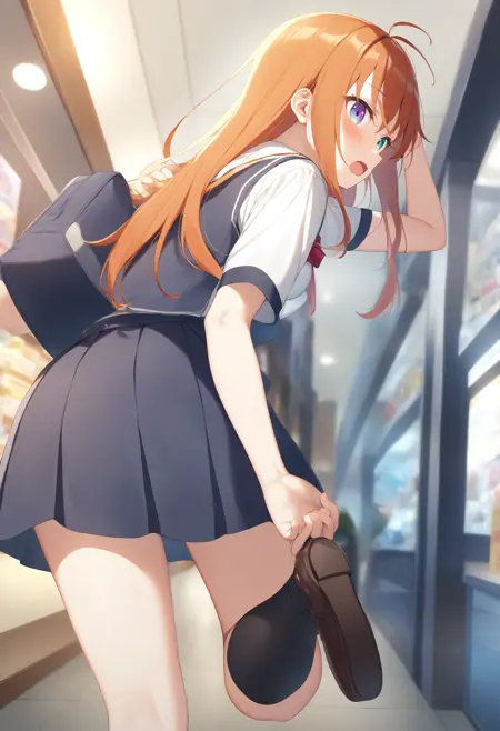 靴を履く際に自分の指をかかと部分に当てるLoRAです。