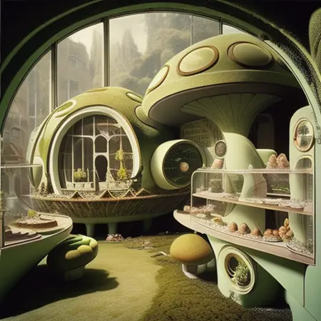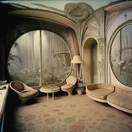 1970년대 프랑스 패션 잡지와 어린 시절의 꿈결에서 영감을 받은 1970년대 모드 사진 스타일을 생성합니다.