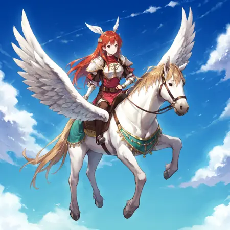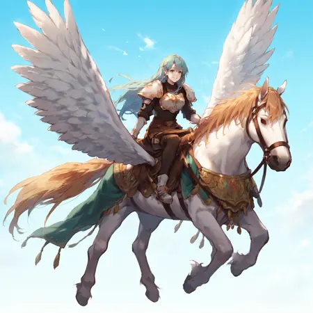 Trigger words : pegasus knight, horse, horseback riding, pegasus,