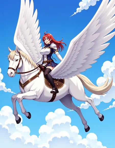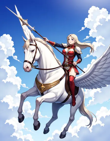 Trigger words : pegasus knight, horse, horseback riding, pegasus,