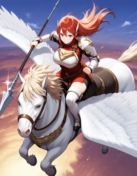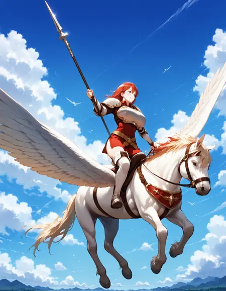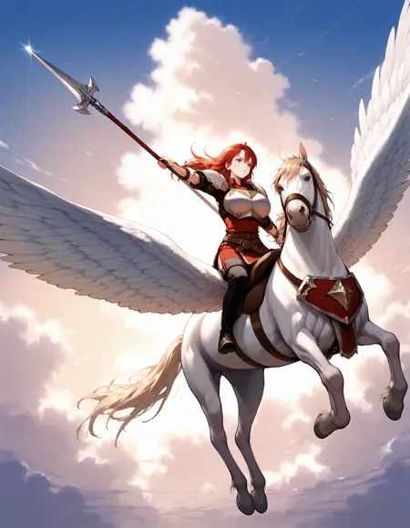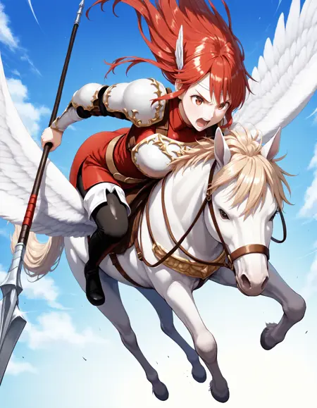 Trigger words : pegasus knight, horse, horseback riding, pegasus,