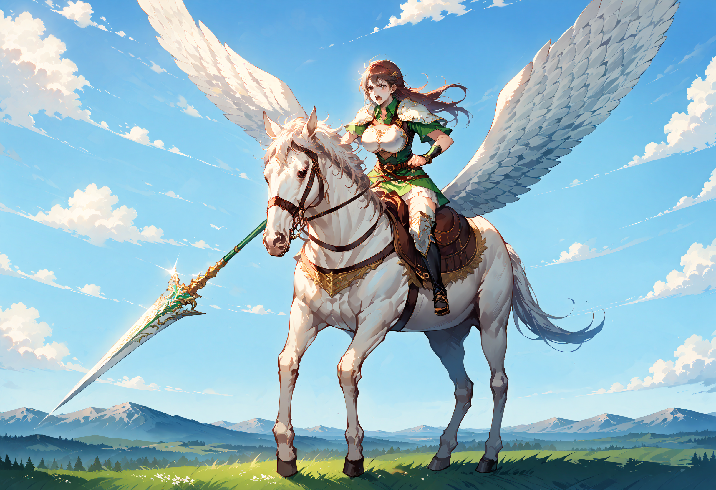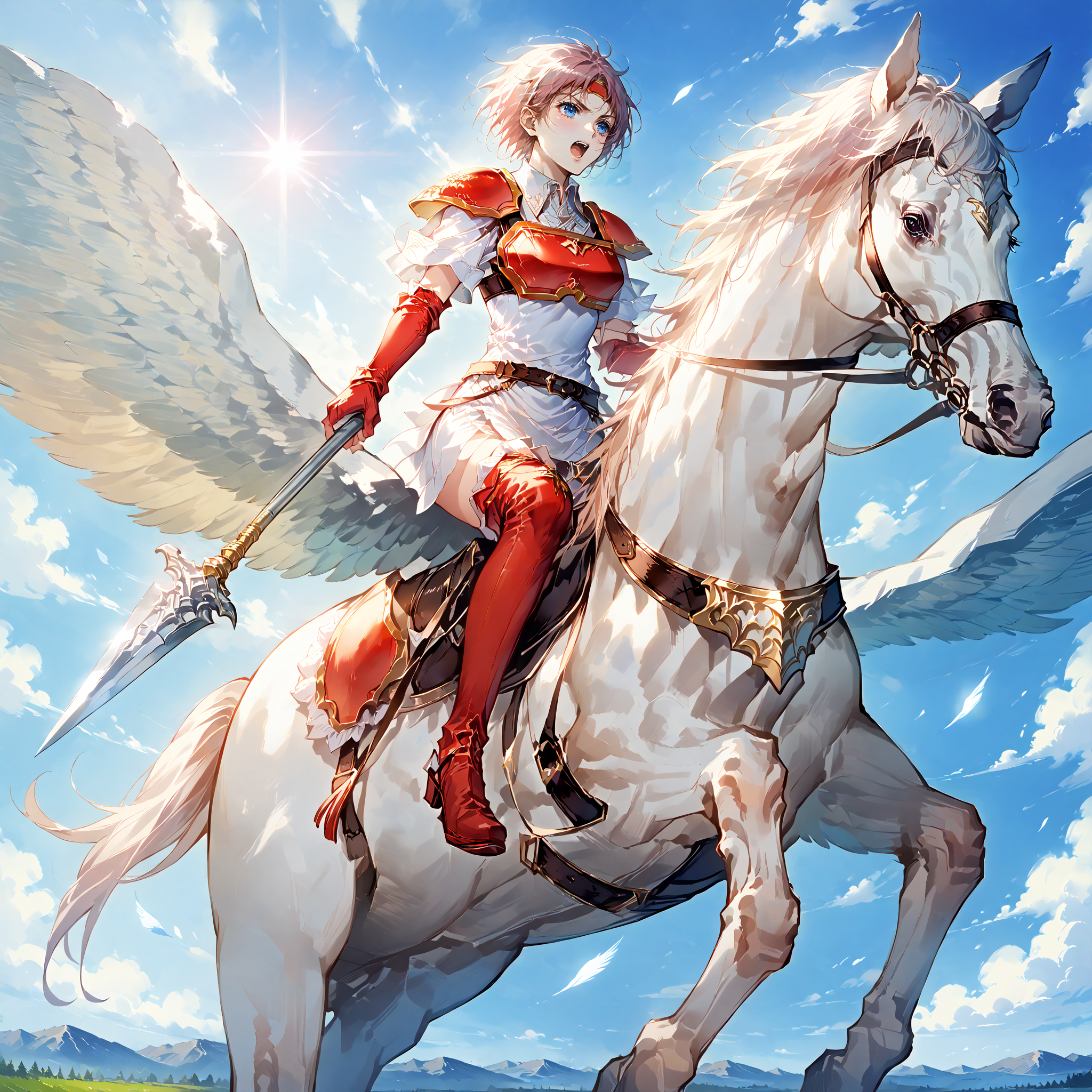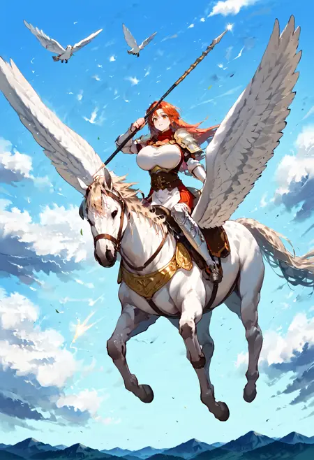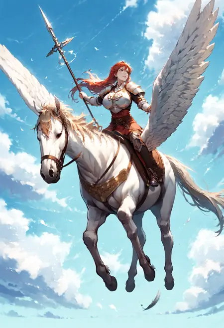 Trigger words : pegasus knight, horse, horseback riding, pegasus,