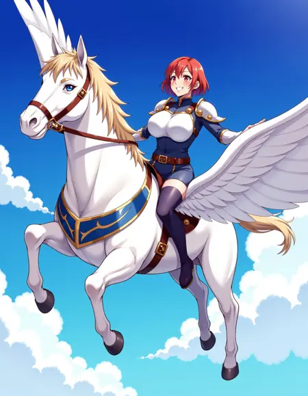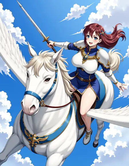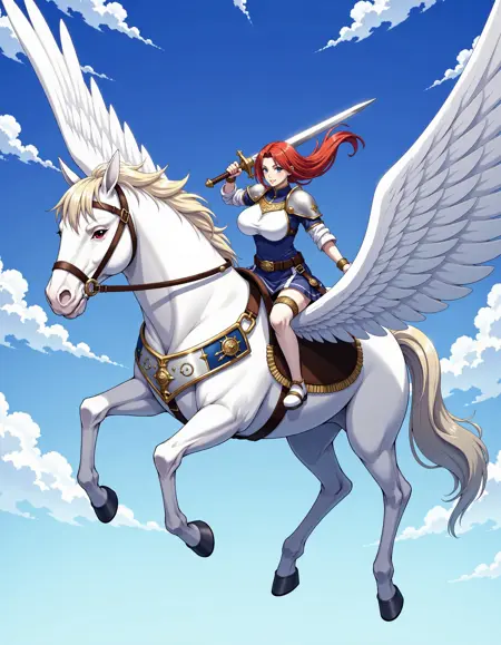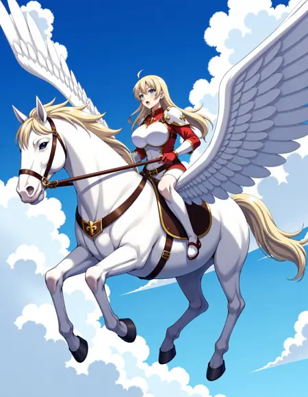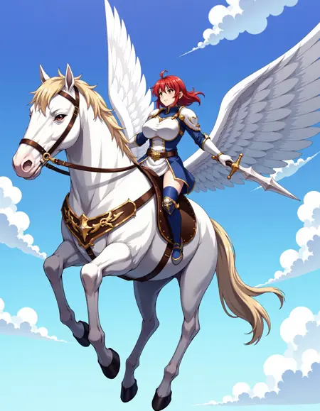 Trigger words : pegasus knight, horse, horseback riding, pegasus,